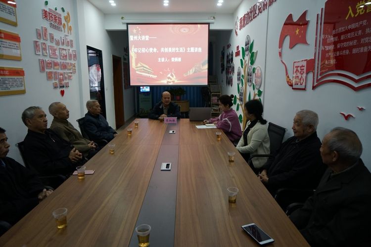 前行不忘来时路,初心不改梦归去。荣书记从四个方面畅谈《牢记初心使命,共创美好生活》:深刻领会初心使命;发挥余热,传播正能量;好好生活,健康生活;家庭教育。荣书记娓娓而谈,引人入胜,赢得了在场党员的高度赞赏,这些支部书记们虽然年岁已高,其中还有90多岁的老党员,整场讲课下来竟无一人离场。