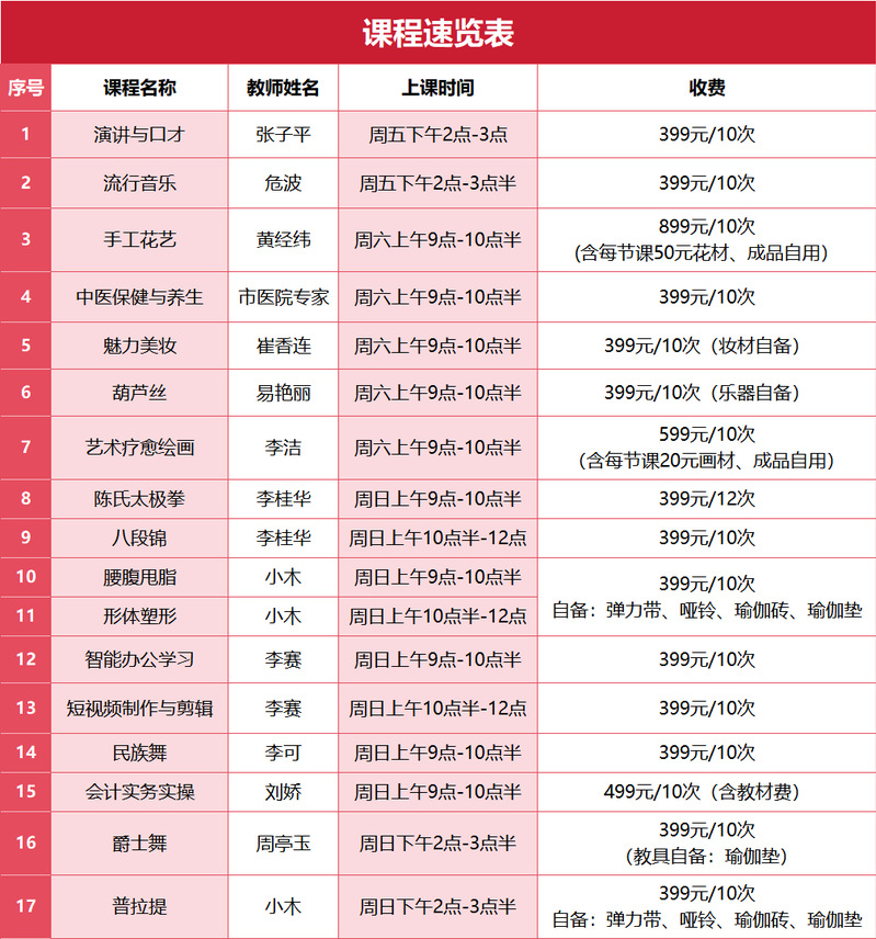 3、若单门课程报名人数不足20人,则不开设该课程。