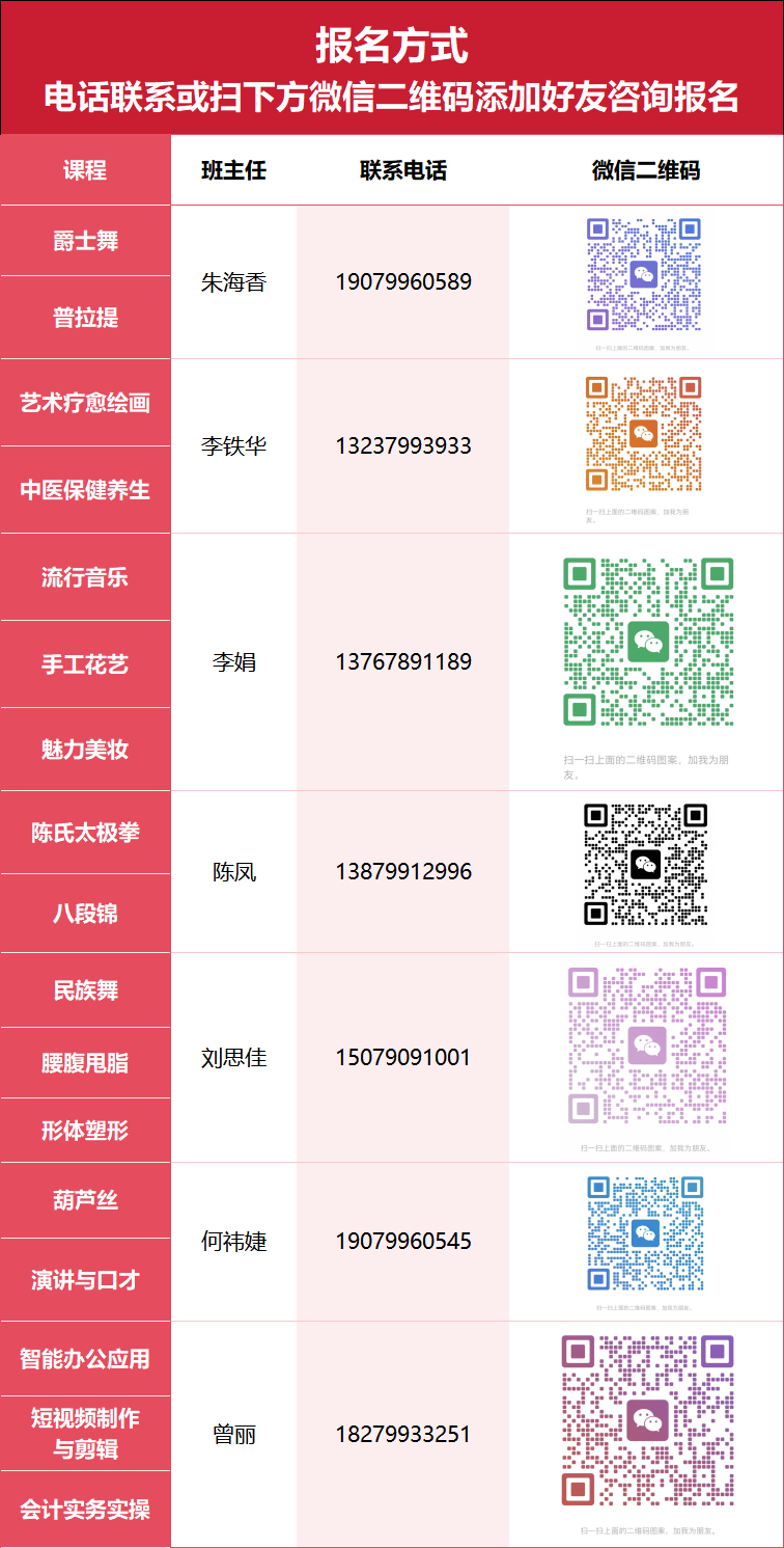 报名对象:18-60岁身体健康、能坚持学习的市民朋友
