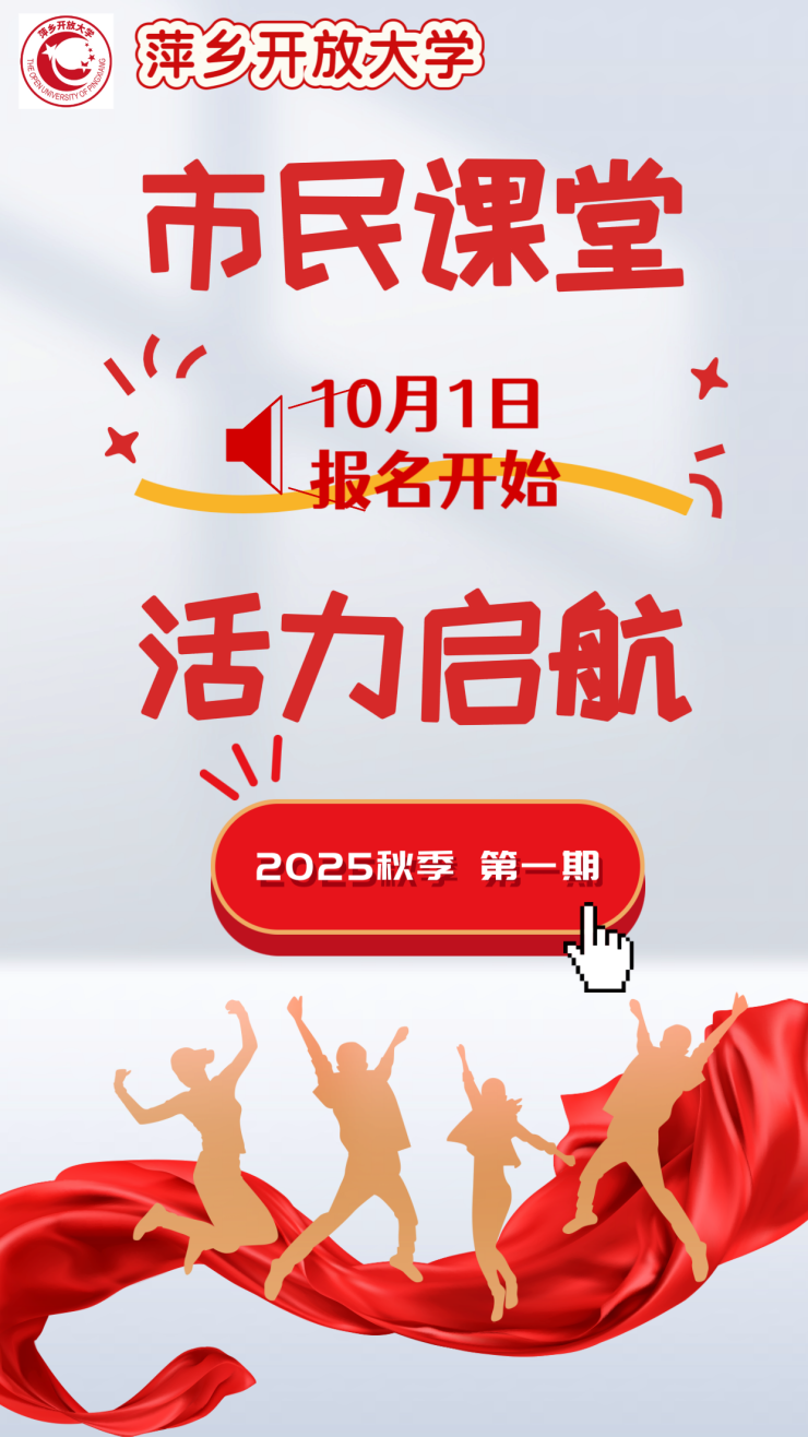 嘿,市民朋友们,您是否在闲暇时光想培养新的兴趣爱好却不知从何入手?是否渴望提升职业技能,为未来的职场之路添砖加瓦?又或者想要通过科学的运动养生方法,拥有健康活力的生活?正好,萍乡开放大学市民课堂来啦,为您量身打造全方位的成长平台!